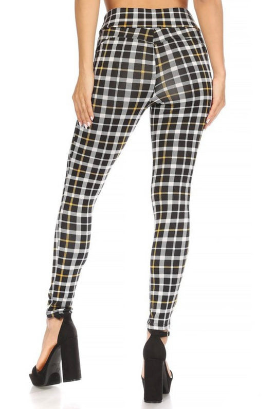 Women's Skinny Stretch Leggings Plaid Casual Pants